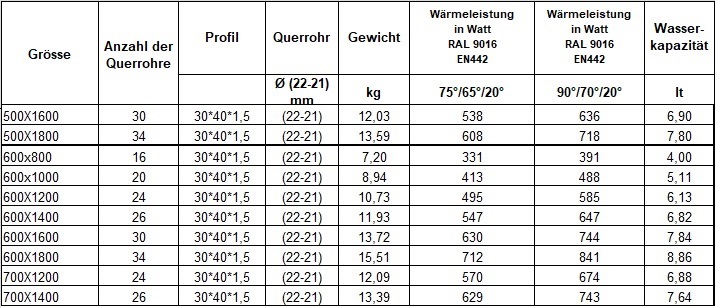 technische Daten Heizkörper: