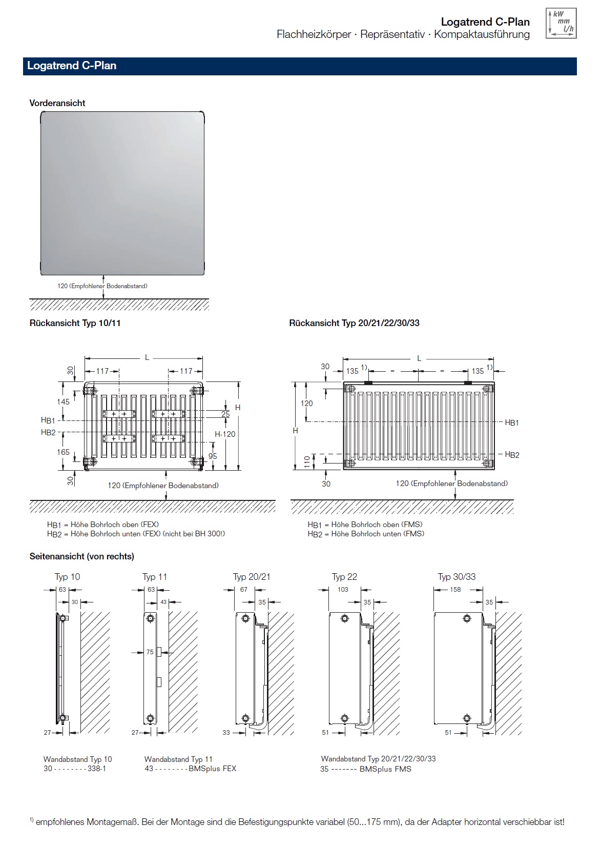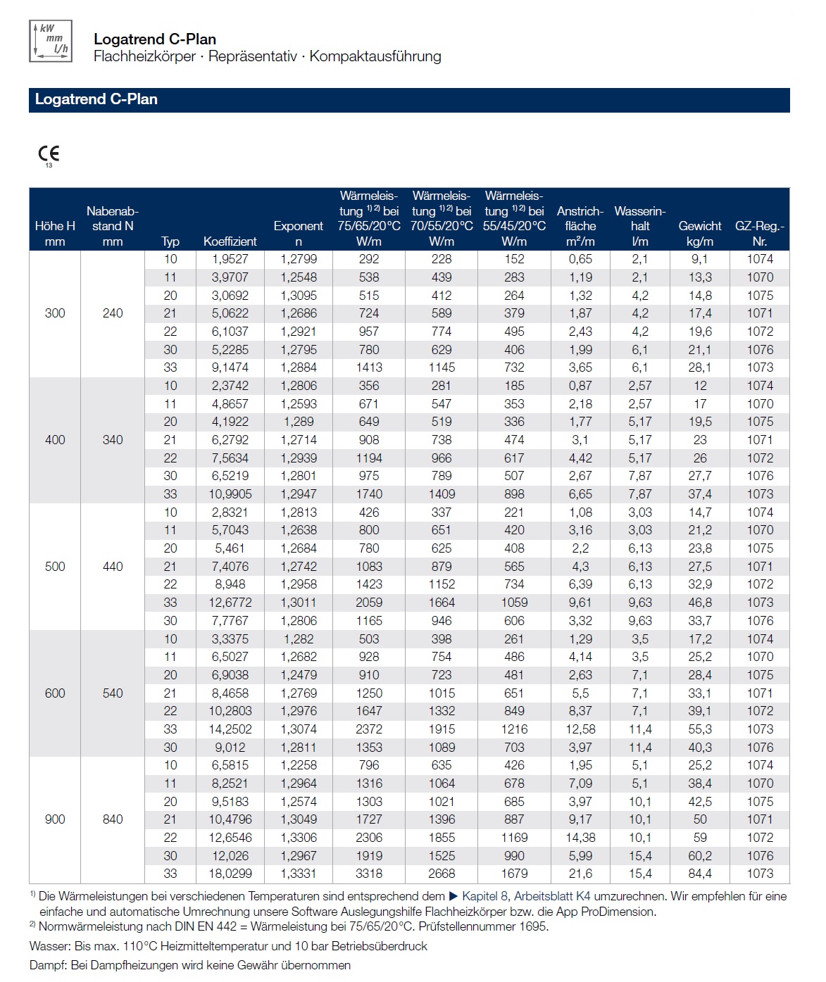Produktinformationen "Buderus Logatrend Heizkörper Kompatheizkörper C Plan, Typ 11, 21, 22, 33, alle Größen"