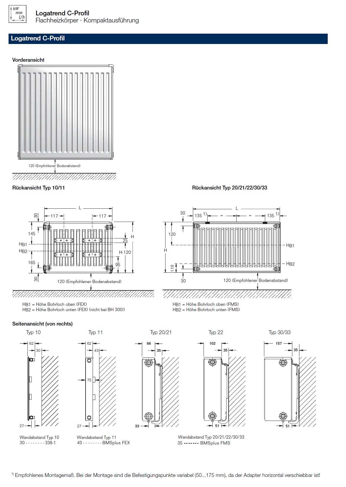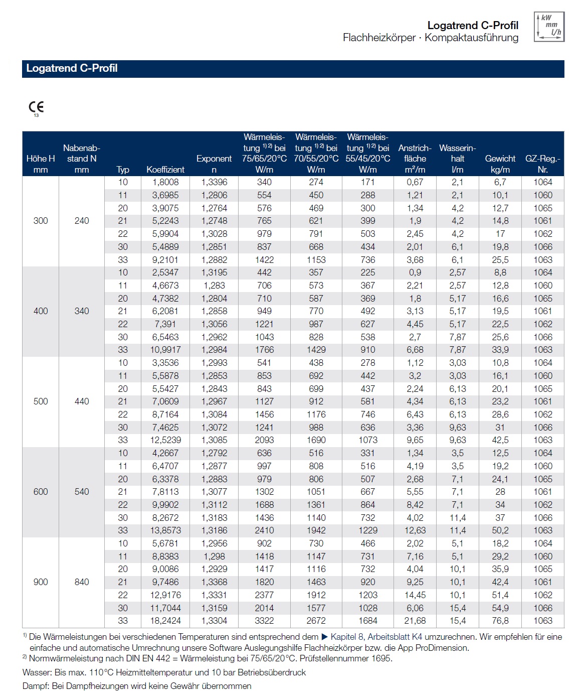Produktinformationen "Buderus Logatrend Heizkörper Kompatheizkörper C Profil, Typ 11, 21, 22, 33, alle Größen"