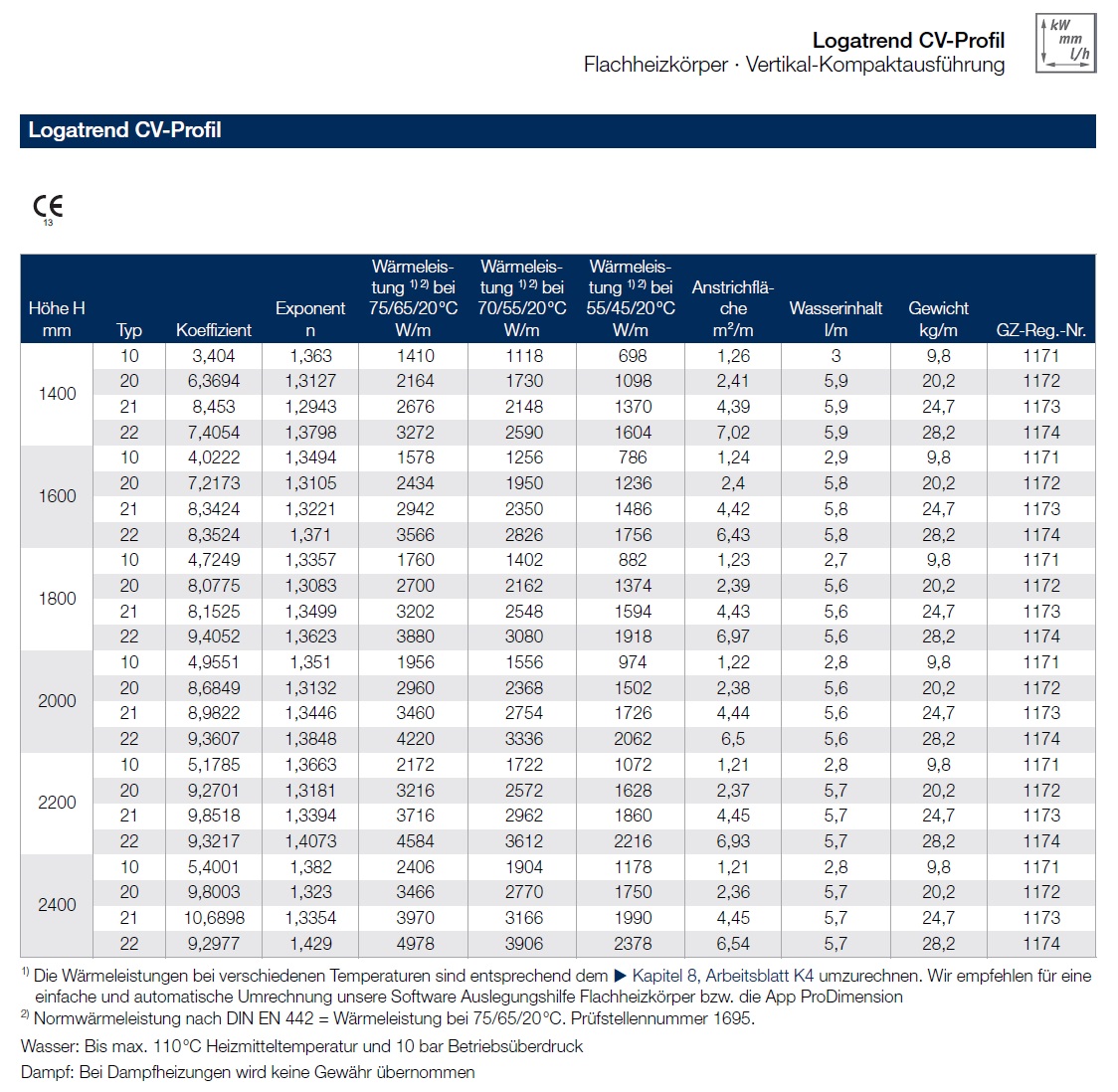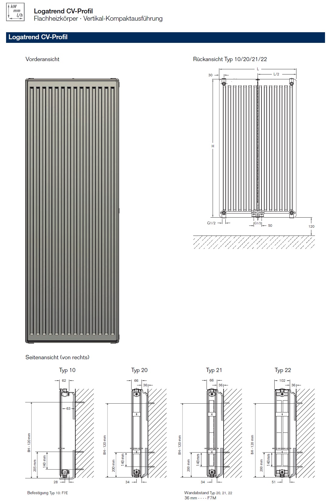Produktinformationen "Buderus Logatrend Heizkörper Ventilheizkörper vertikal CV Profil, Typ 10, 20, 21, 22, alle Größen"