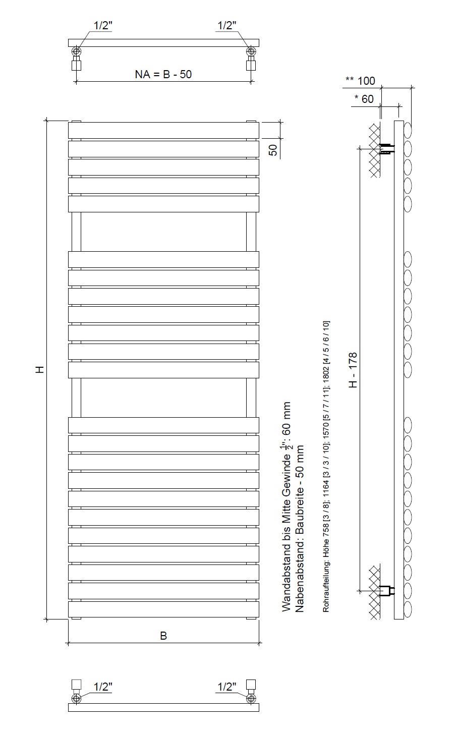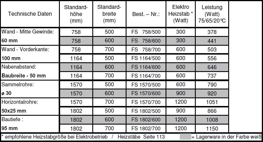 - die Modelle in 758/1164/1570/1802 x 600mm mit Standardanschluss in weiß sind Lagerware (Lieferzeit 4-9 Tage)