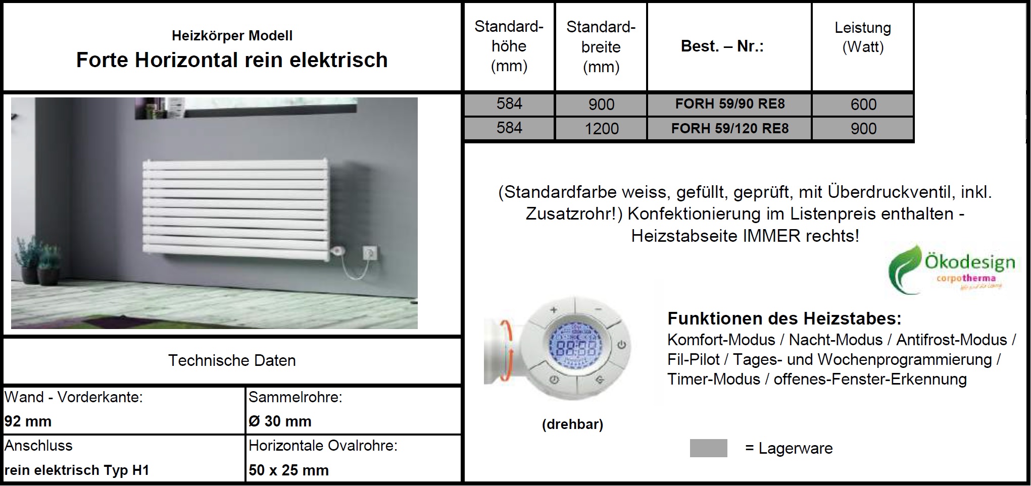HS H1: Leistung: 600 oder 900 Watt, Komfort-Mode (Raumtemperatur), Nacht-Modus, Frostschutzfunktion, Fil-Pilot, Tages- und Wochenprogrammierung,