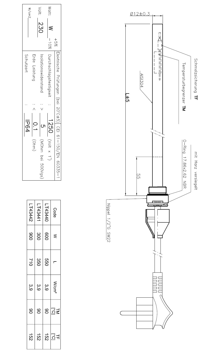 Produktinformationen "Corpotherma Heizstab Heizpatrone elektrisch mit Stecker Typ 1, Farbe weiß "