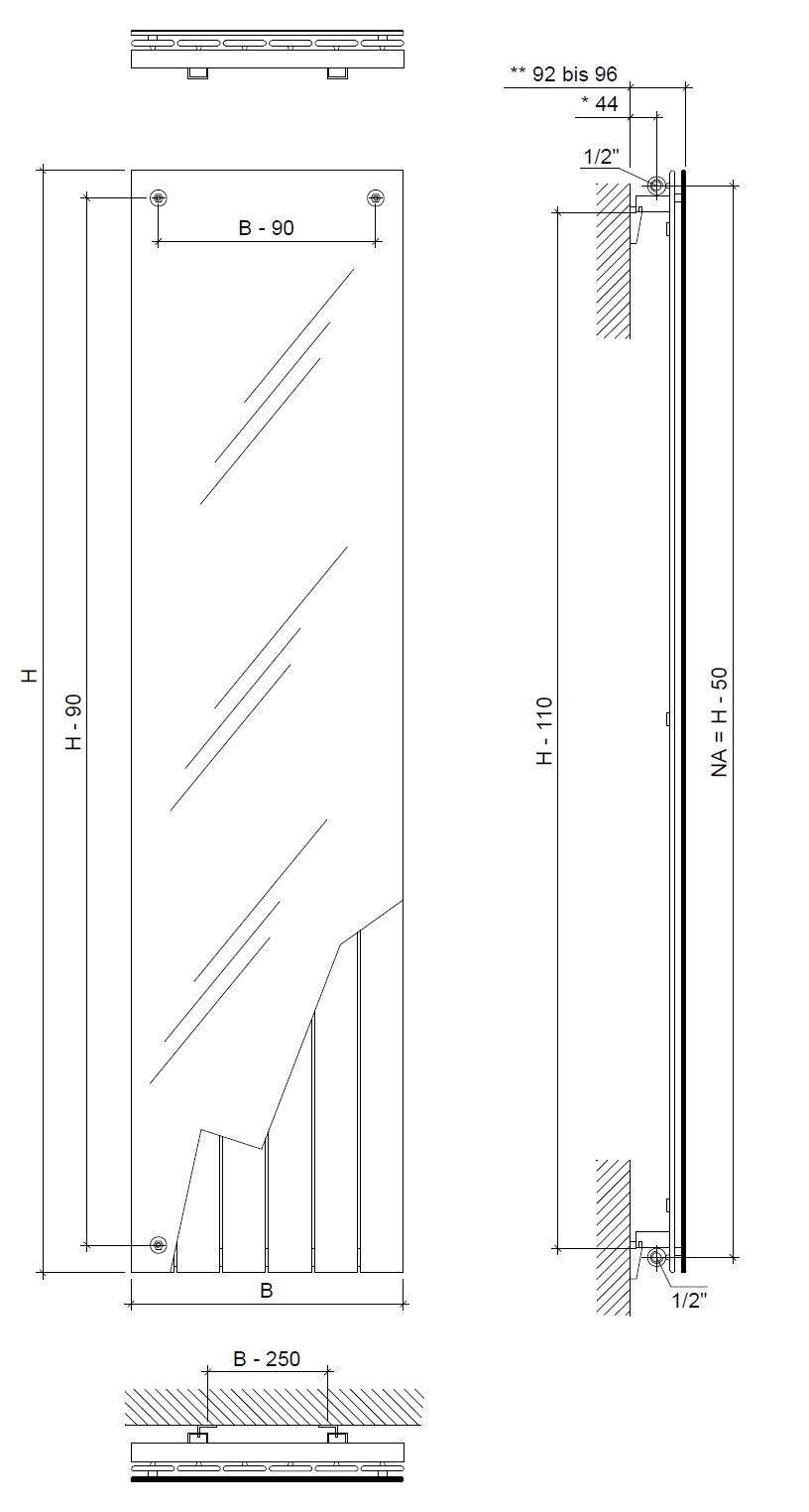 - die Farbe des Heizkörpers RAL 9006