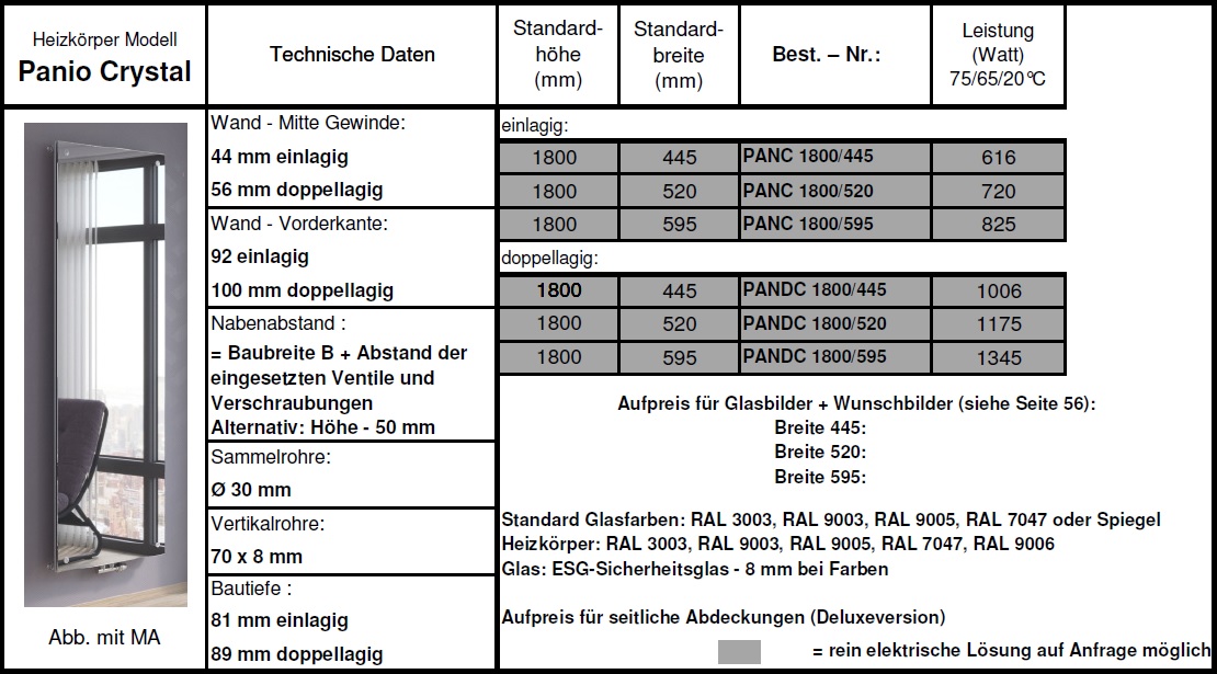 - Heizkörper ohne Bild nur mit farbigen Glas (RAL 3003, RAL 9003, RAL 9005 und RAL 7047 auf Anfrage