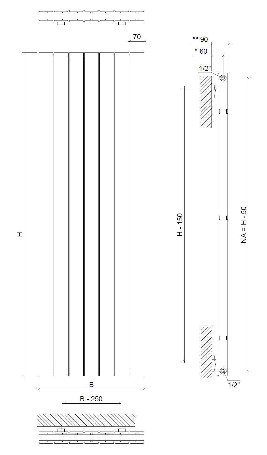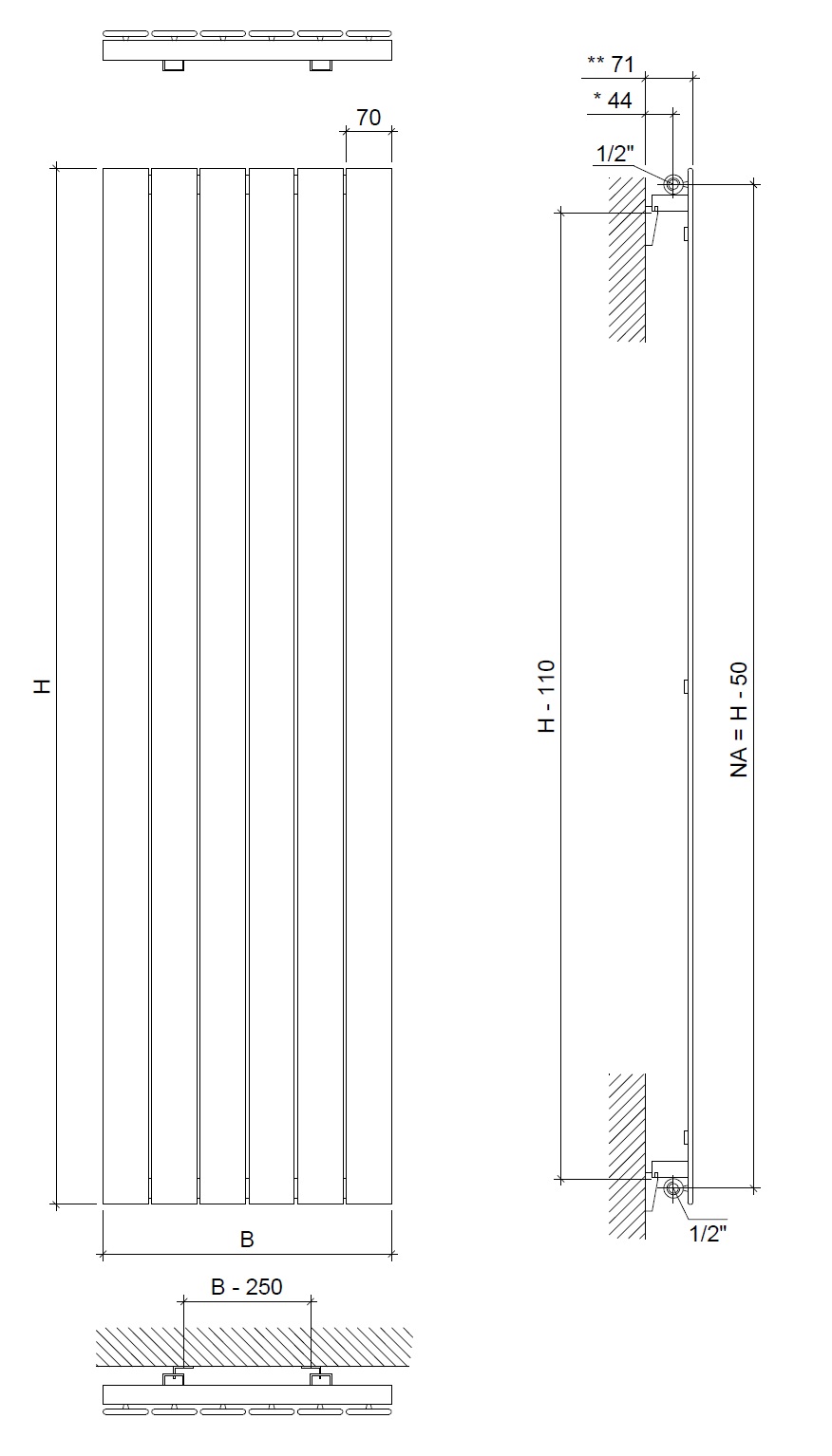 - vertikale Paneele 70 x 8 mm