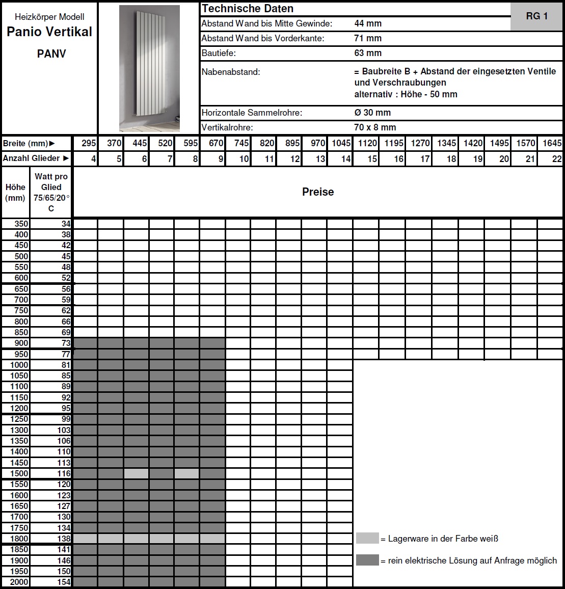 technische Daten Heizkörper: