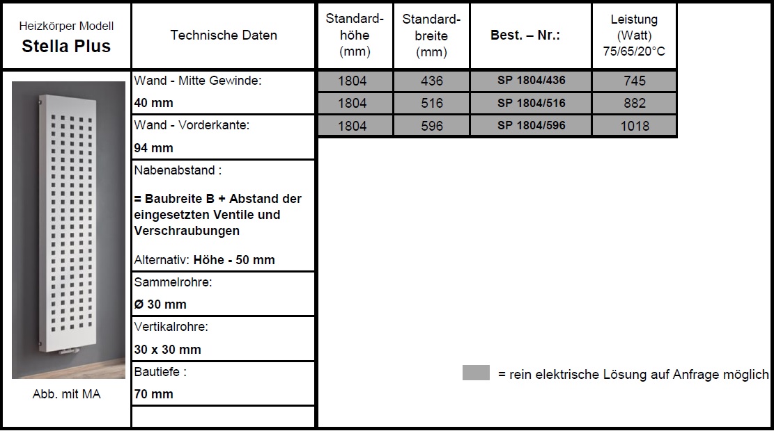technische Daten Heizkörper: