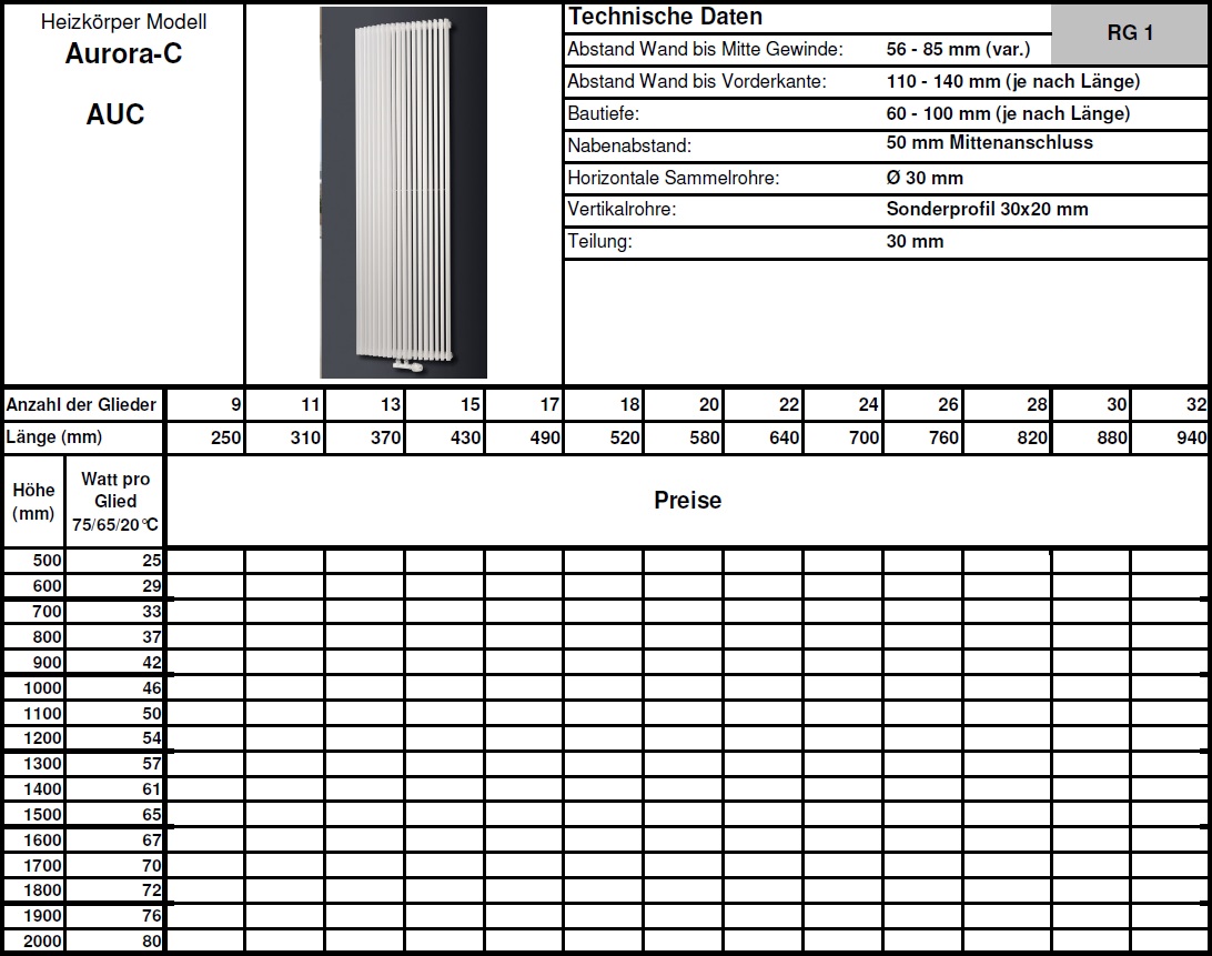 technische Daten Heizkörper:
