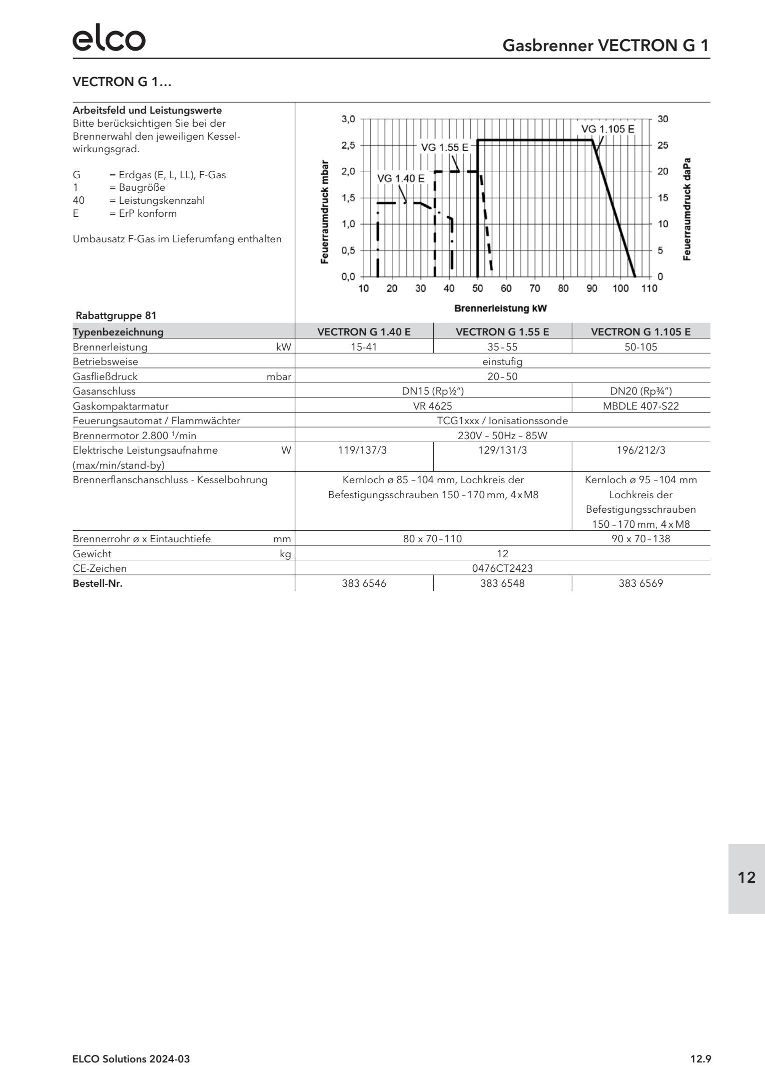 Brennerleistung 15-105 kW (je nach Modell)