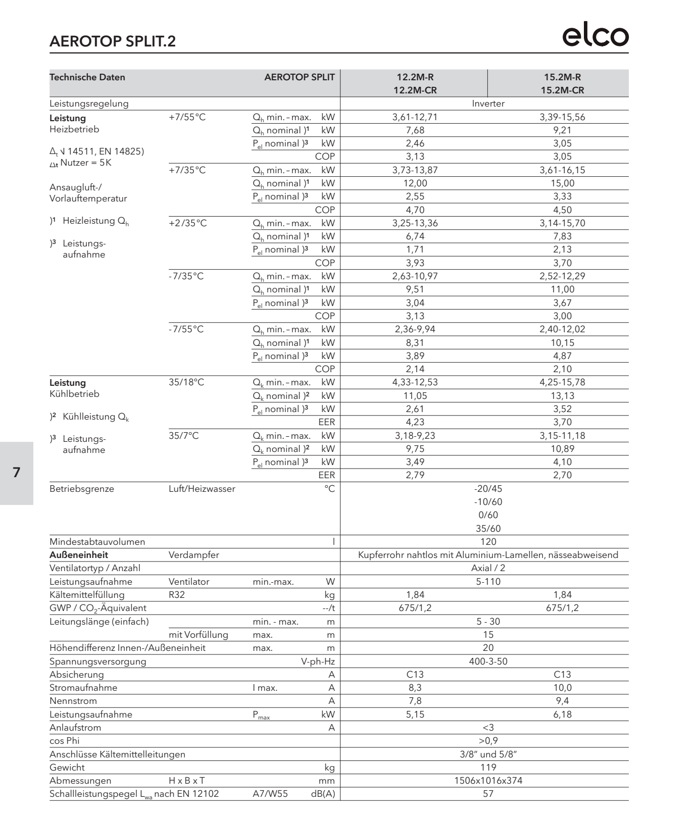 Heizleistung 4-15 kW @A7/W35
