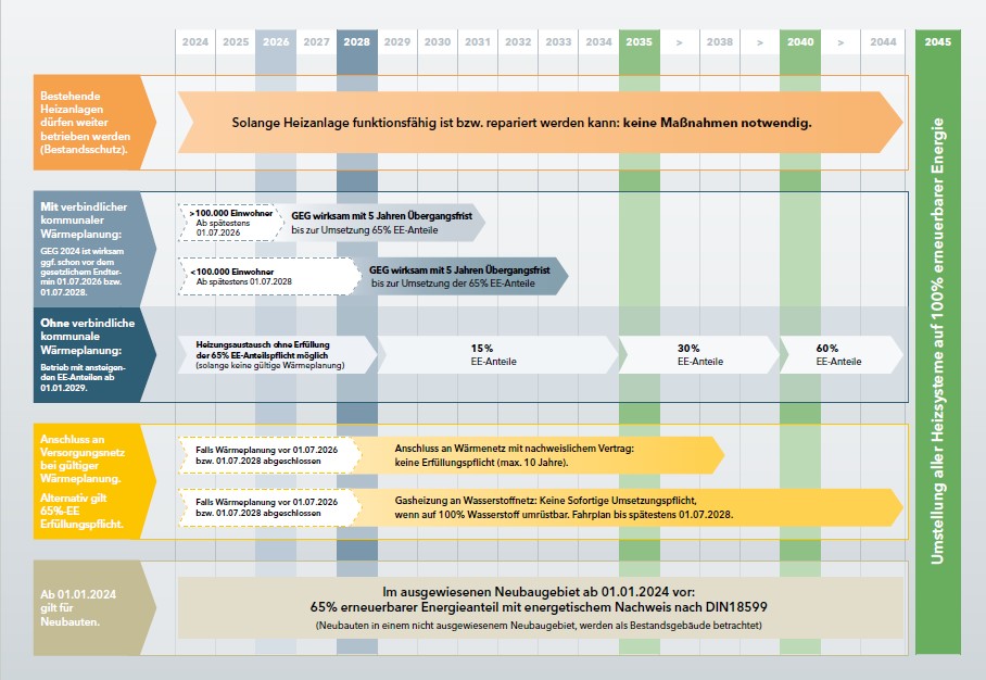 Die gesetzliche Neuregelung tritt bei ausgewiesenen Neubaugebieten ab 01. Januar 2024 in Kraft.