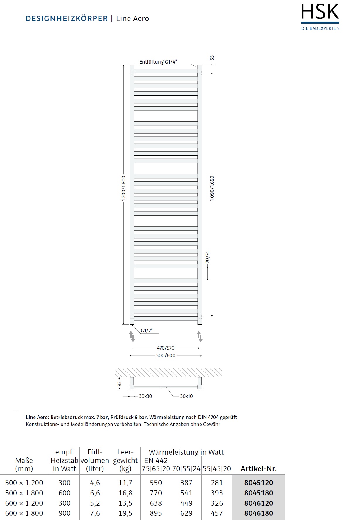 technische Daten Heizkörper:
