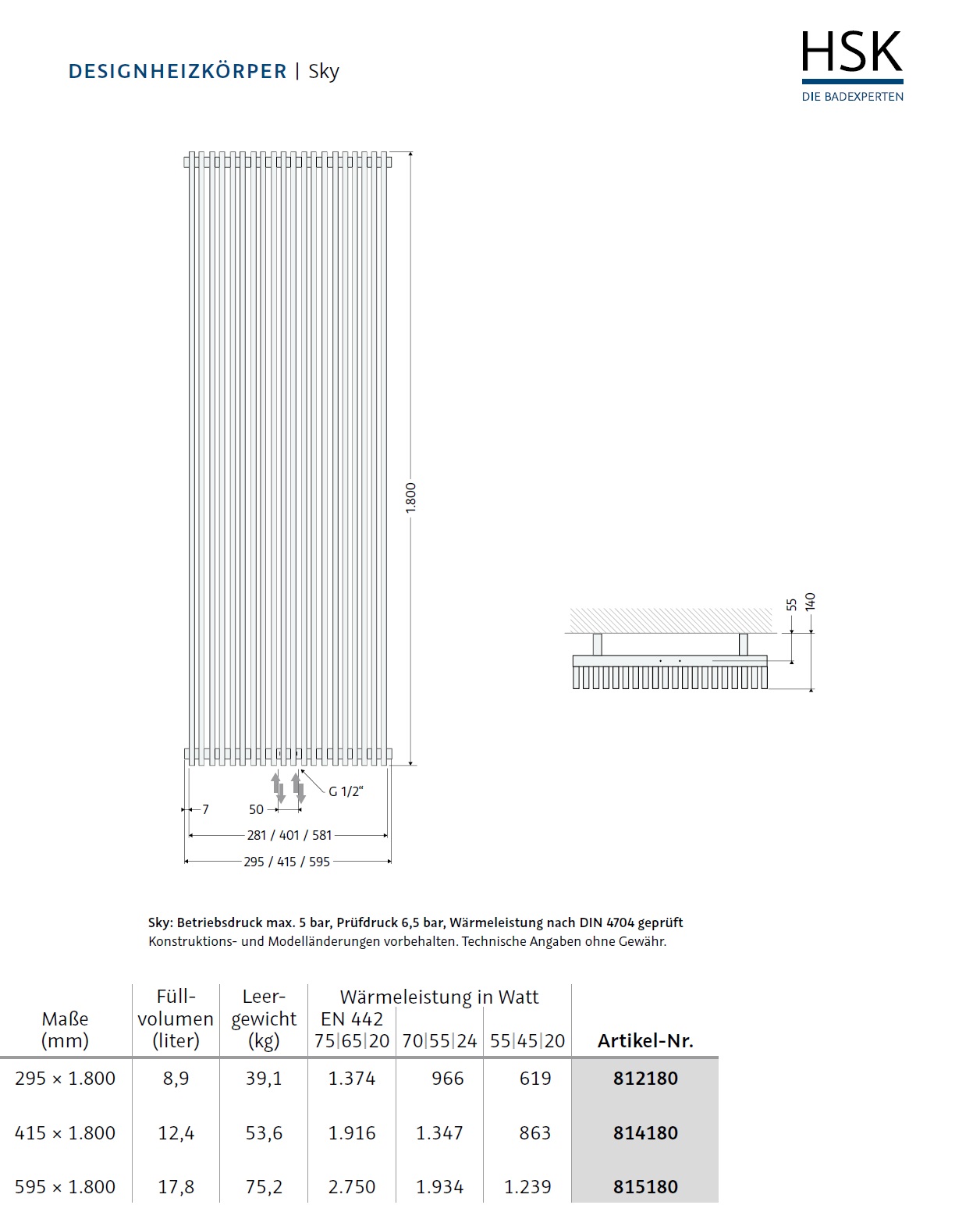 Produktinformationen "HSK Sky Badheizkörper, Handtuchtrockner, Rippenheizkörper, 3 Größen, viele Farben"