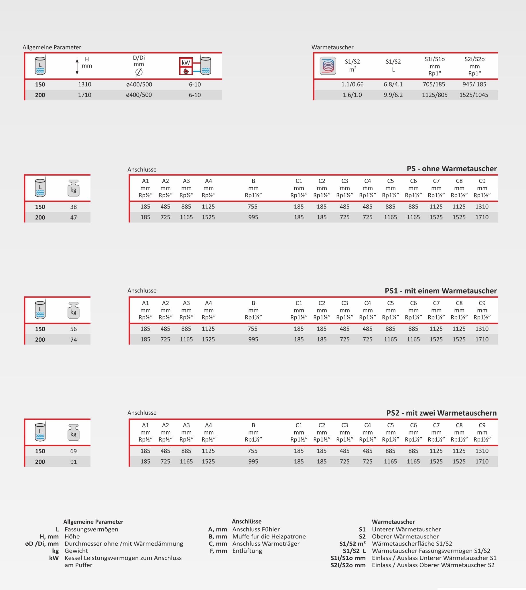 Speichers. Alle Pufferwasserspeicher sind mit einer 50mm Hochleistungsdämmung + PVC Mantel Farbe RAL9006