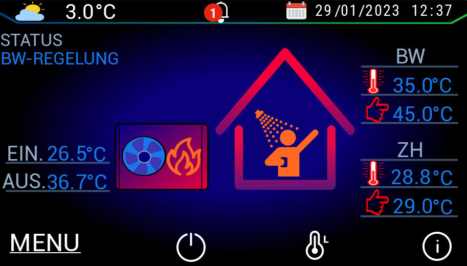 grafische Anzeige der Betriebsparameter von Wärmepumpe und Heizkreisen