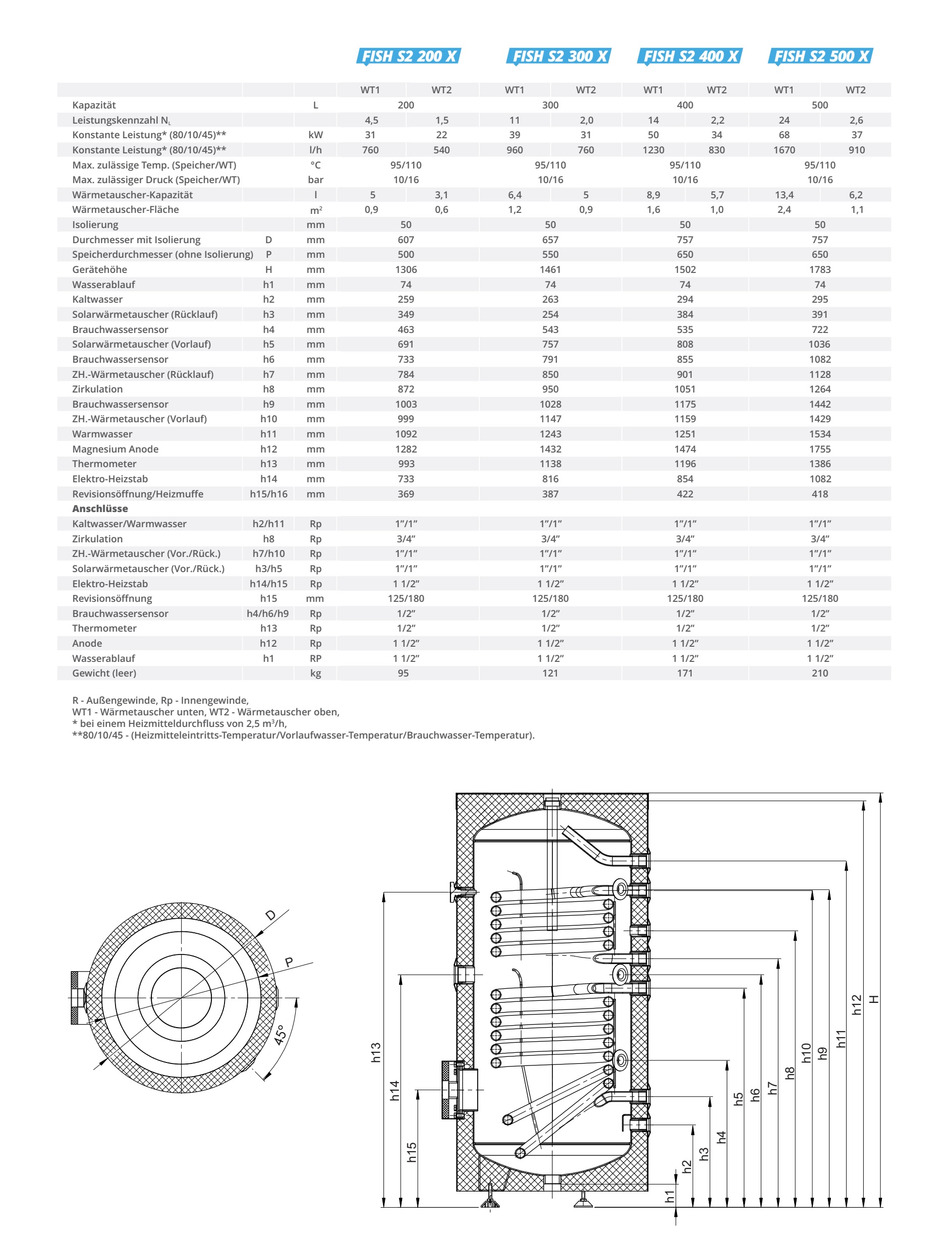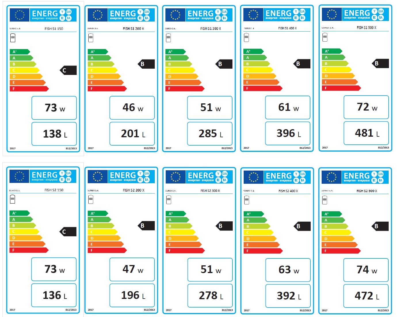 Effizienzklasse C bei SON 150 und 750l, Klasse B bei FISH S2 X 200- 500l
