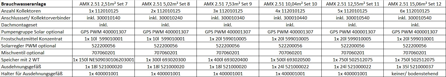 AMX Solarkomplettpakete für Brauchwasserbereitung: