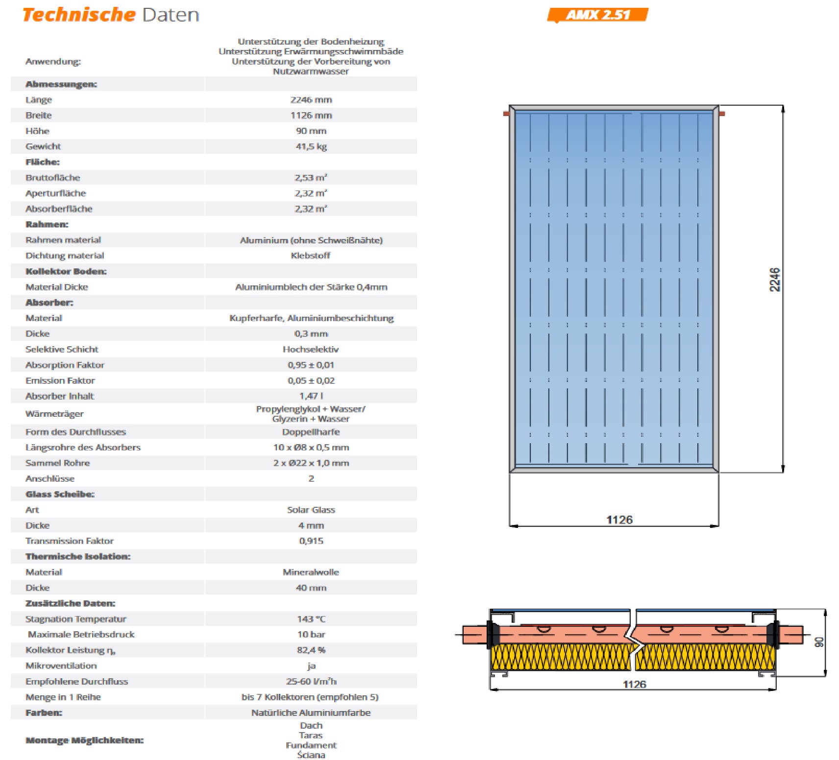 thermische Isolation des AMX Kollektors bewirkt, dass er sowohl im Sommer als auch im Winter eine sehr