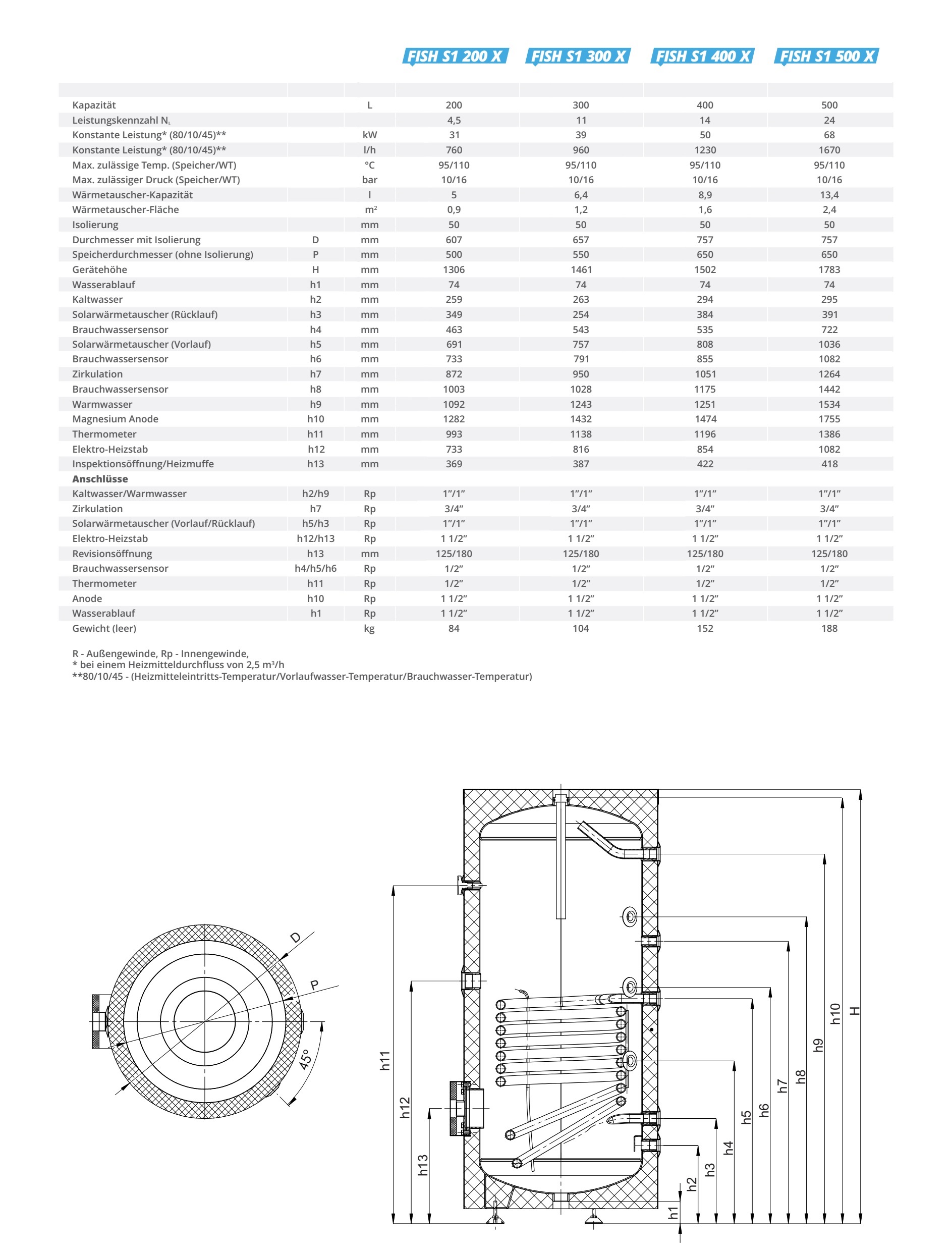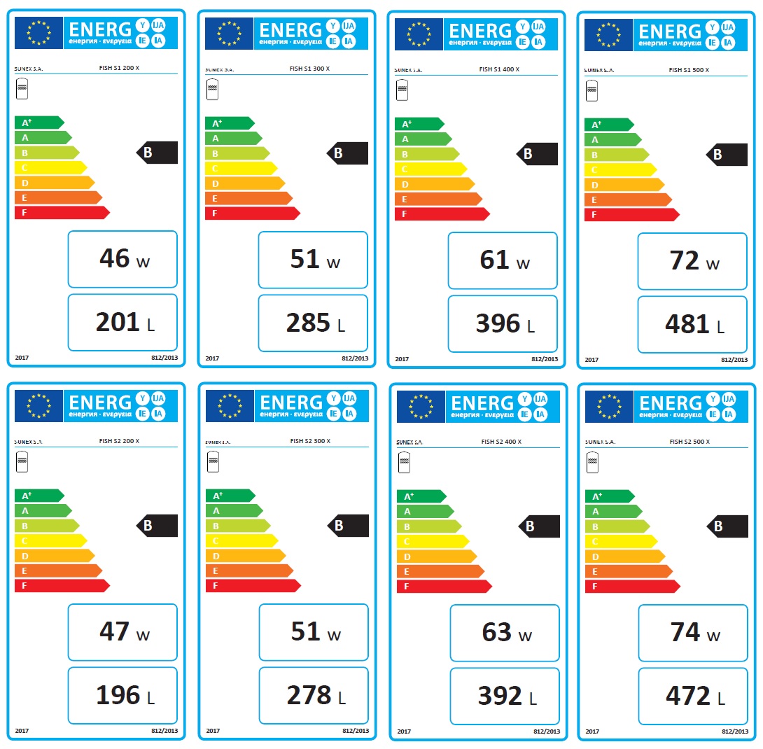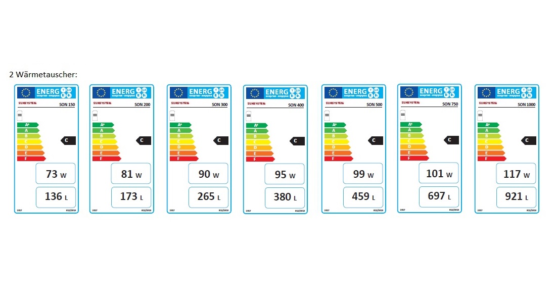 Effizienzklasse C bei SON 150, 750 und 1000l - Klasse B FISH S2 X bei 200- 500