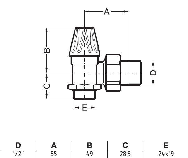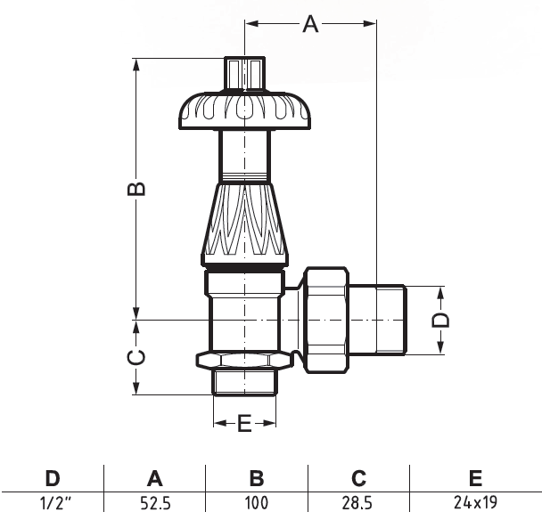 - Regulierventil stufenlos Eckform 1/2" x 3/4"